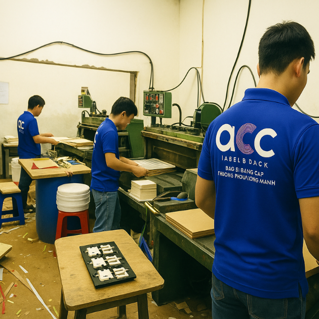 CÔNG TY ACC Label & Pack là đơn vị chuyên thiết kế, sản xuất, in ấn với nhiều năm kinh nghiệm. Quy mô nhà máy hơn 1000m2 tại KCN Quảng Phú. Đầu tư máy móc hiện đại, nhân sự nhiệt huyết mang đến sản phẩm bao bì đẹp đúng ý.